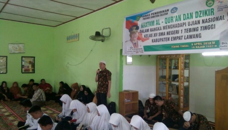 MEL, Empatlawang – Menjelang Ujian Nasional Berbasis Komputer (UNBK) Ratusan siswa kelas XII Sekolah Menengah Atas (SMA) Negeri 1 Tebing Tinggi Kabupaten Empat Lawang menggelar Khatam Al-Quran dan Doa bersama di dalam Mushola sekolah. Jum’at (5/4).