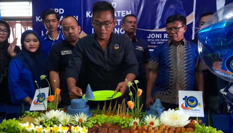 Ketua DPD Partai Nasdem Empat Lawang, Joni Riko, mengatakan pemotongan tumpeng merupakan salah satu bentuk peringatan hari lahirnya  Partai Nasdem yang Ke-10. Selaku pengurus partai terus bersemangat untuk memajukan partai kedepannya.