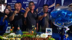 MEDIAEMPATLAWANG— Dalam rangka menyambit hari lahirnya partai besutan Surya Paloh dengan Take Line Restorasi. Yang sudah berumur Satu Dekade. Selain menggelar Bakti Sosial, Tepat pada hari Kamis, (11/11/2021) seluruh jajaran Partai Nasdem mulai dari DPW dan DPD laksanakan potong tumpeng serentak.