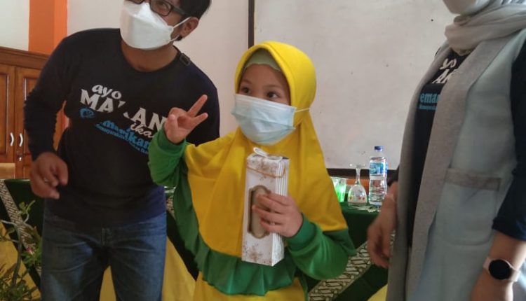 “Para siswa ini diajak untuk gemar memakan ikan sembari kita lakukan cara tanya jawab berhadiah,”terangnya