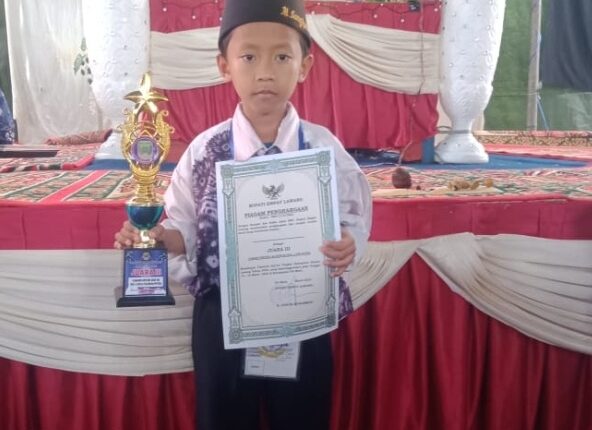 Keterngan Foto: Terlihat ananda Muhammad Sangkuntara siswa kelas II. SD IT Aisyiyah Tebing Tinggi, sedang memegang trofi dan piagam. Atas peraihan juara III lomba Hifzil Qur’an di MTQ tingkat Kabupaten. Foto Ist.