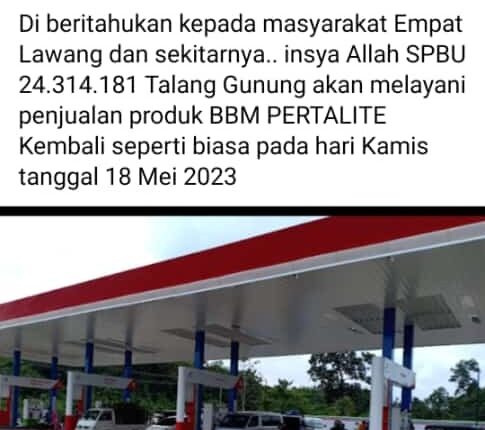 Hal itu disampaikan langsung oleh Pemilik POM Bensin Talang Gunung, Syaiful Zahri. Kami Tanggal 18/05/2023 sudah beroprasi kembali.