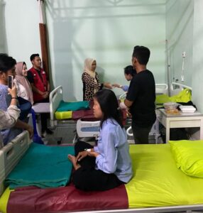 Teks Foto: Terlihat Ketua PMI Empat Lawang dan jajarannya saat menyanbangi pasien bibir sumbing yang akan segera dioperasi. Foto Ist