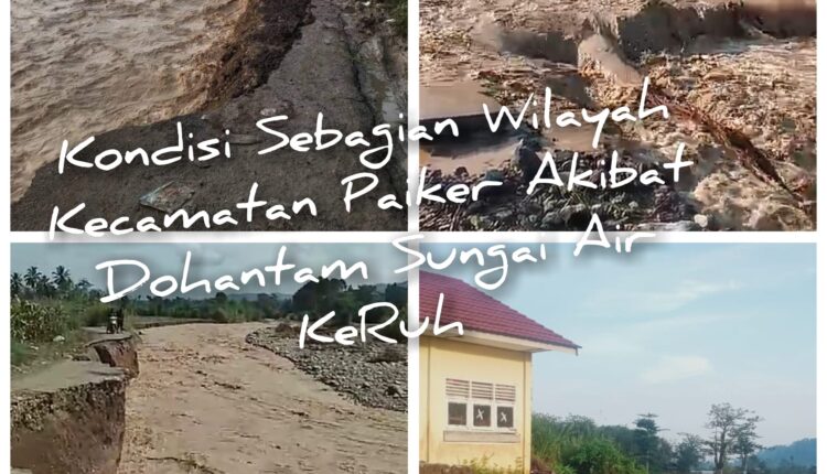 Air besar luapan Sungai Keruh sudah mulai masuk keperkampungan air bercampur pasir dan tanah. Terlihat mulai masuk keperkampungan, bahkan akses jalanpun disebagian terlihat sudah nyaria putus, beberapa fasikitas umumpun mulai terendam air dan genangan lumput. Pagar SMP O3 Talang Padang, SD didesa Air Mayan, Bahkan Pagar SMPN 03 Talang Padang sudah hancur dihantam aliran air sungai keruh.