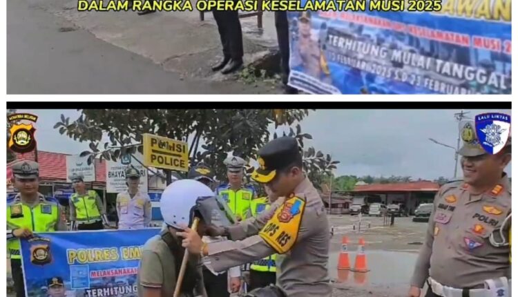 MEDIAEMPATLAWANG— Salah satu upaya untuk mencegah terjadi Fatalitas dalam berkendara berujung maut. Maka dari itu secara langsung Kapolres Empat Lawang. AKBP. Abdul Aziz Septiadi bersama Satlantas Bagikan Helm kepada pengendara sepeda motor. Hal itu dilakukan dalam rangka Operasi Keselamatan Musi 2025 sebagai cipta kondisi menjelang operasi Ketupat menjelang hari raya Idul Fitri. Rabu(19/02/2925).