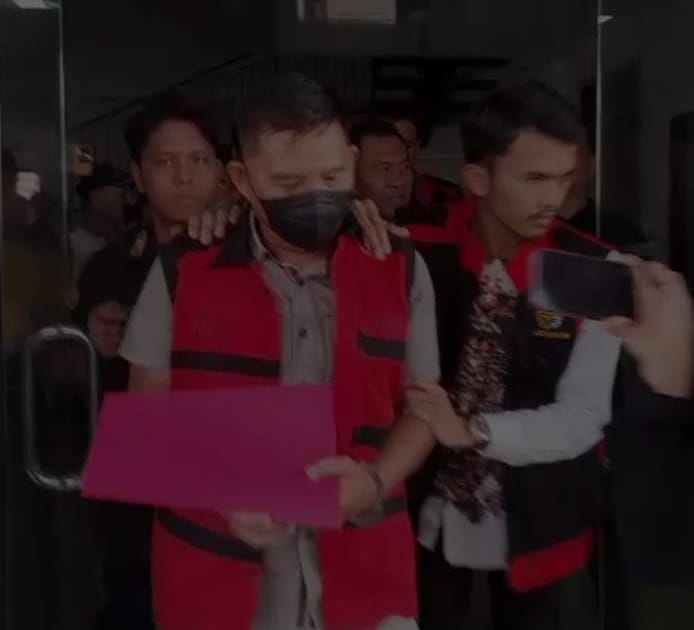 Teks Foto: Tersangka Korkab Pendamping Desa Kabupaten (BA), saat digiring Kejaksaan untuk di tahan atas dugaan kasus pengadaan APAR. Dok MEL