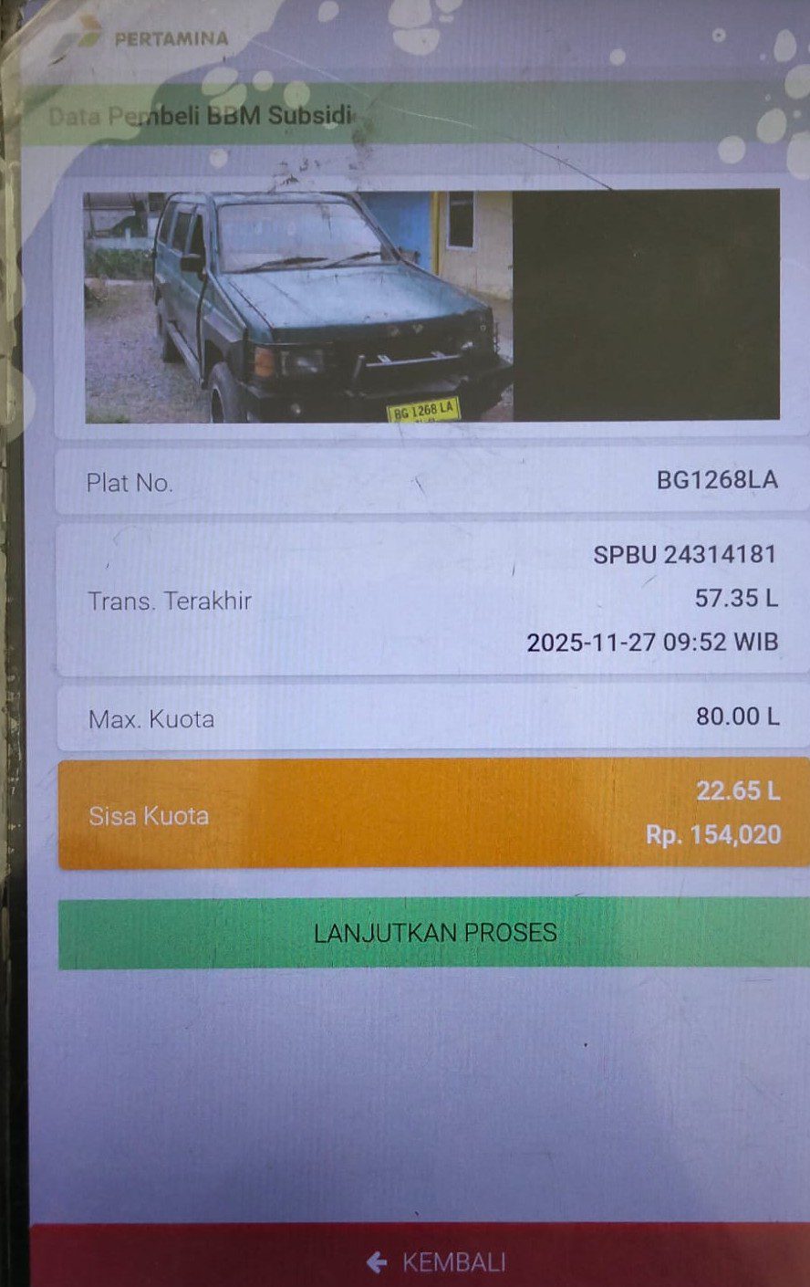 Lebih jauh dikatakannya, kalau ada yang mengklaim bahwa itu berbeda atau salah data, Itu diluar kewenangan pihaknya (Pemilik atau Petugas SPBU,red) Sebab ketika pemilik kendaraan mendaftarkan barcode di aplikasi Mypertamina, Mereka wajib melampirkan, STNK dan foto kendaraan sesuai dengan yang didaftarkan. Artinya itu sudah terdaftar di aplikasi.