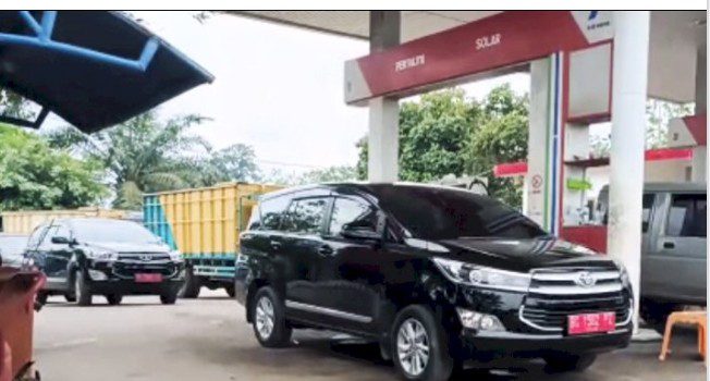 Keterangan Foto: Gambaran foto Ilustrasi. Mobil plat merah beli BBM bersubsidi. Foto diambil dari Internet