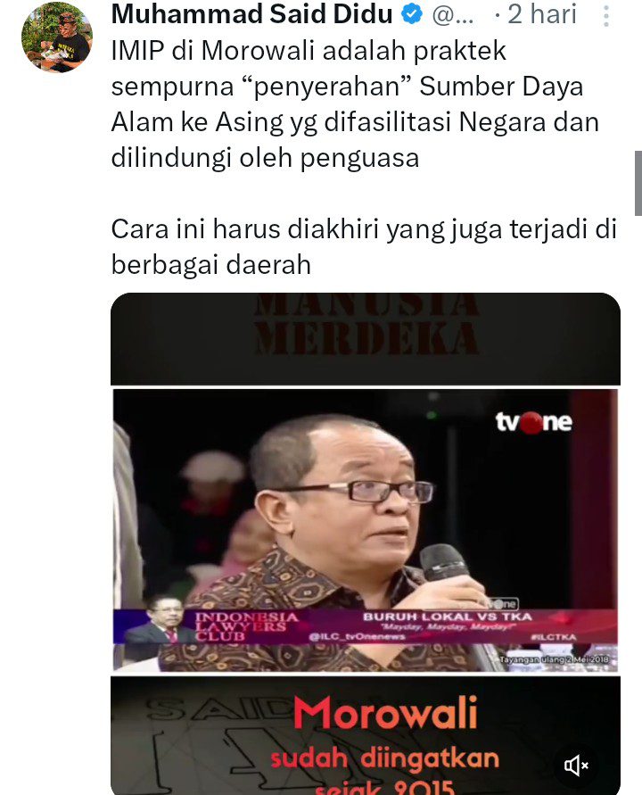 “IMIP di Morowali adalah praktik sempurna “penyerahan” Sumber Daya Alam ke Asing yg difasilitasi Negara dan dilindungi oleh penguasa,” tulisnya dikutip Minggu 30 November 2025.