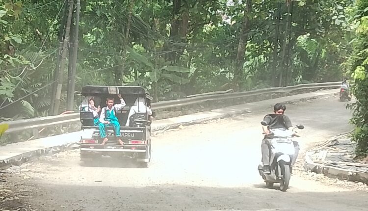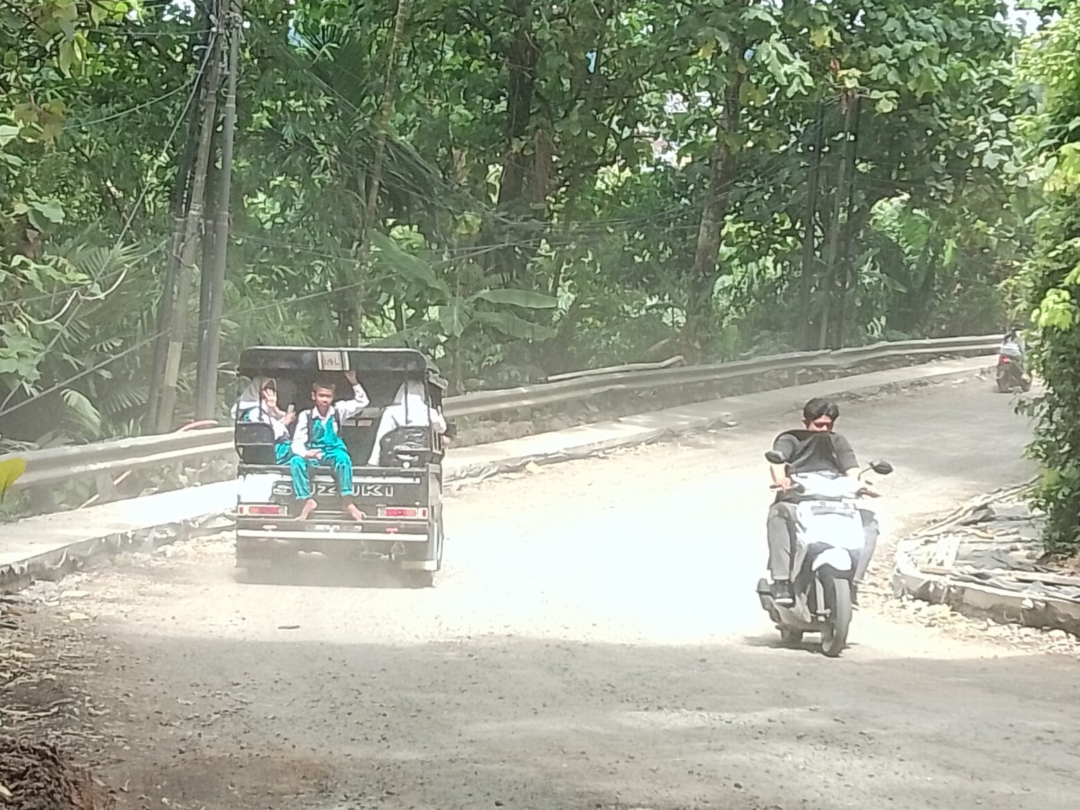 “Debu dan krikil berhamburan mengakibatkan kondisi jalan berdebu dan rawan kecelakaan terutama untuk kami pengendara roda dua,” tutur Somad, salah satu pengendara .