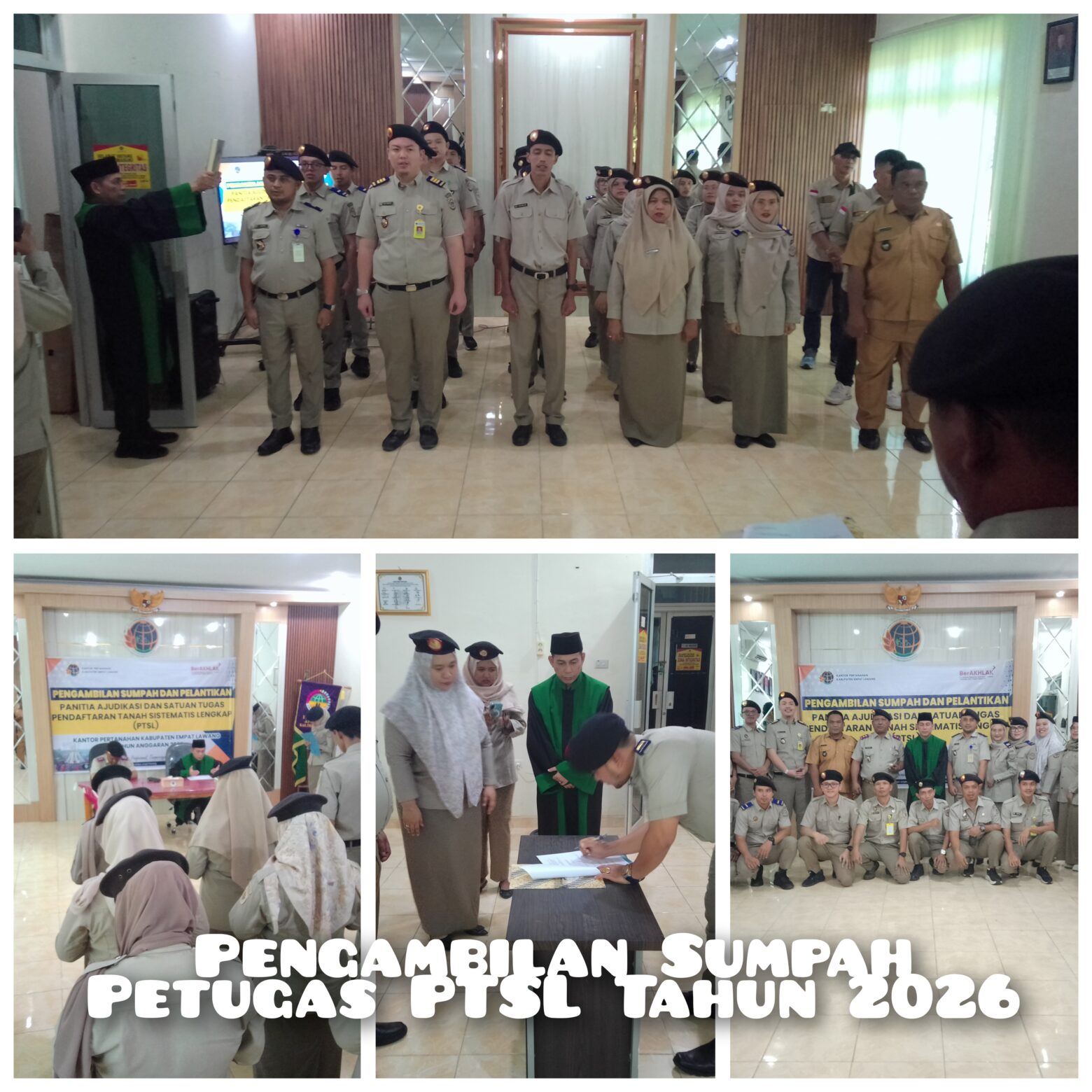 MEDIAEMPATLAWANG— Kepala Badan Pertanahan Nasional (BPN) Empat Lawang. Sugiarto Tampubolon ambil sumpah Dan Lantik Puluhan petugas panitia Ajudikasi dan Satuan Tugas Pendaftaran Tanah Sistematis dan Lengkap (PTSL) tahun anggaran 2026.